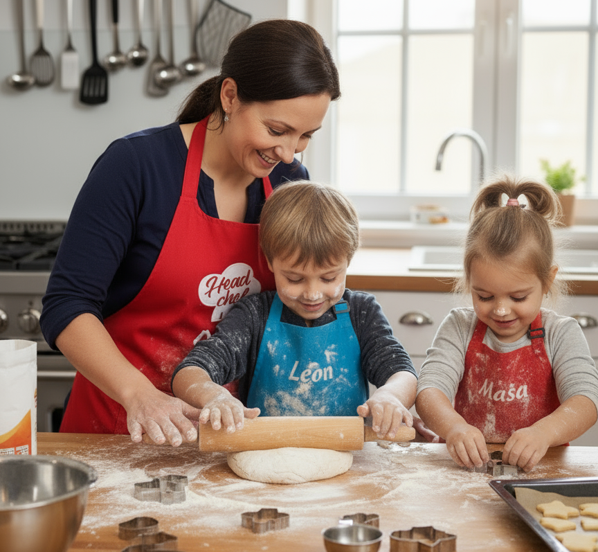 Warm, persönlich und praktisch — die personalisierte Kinderschürze verbindet Spiel, Lernen und Freude in der Küche.